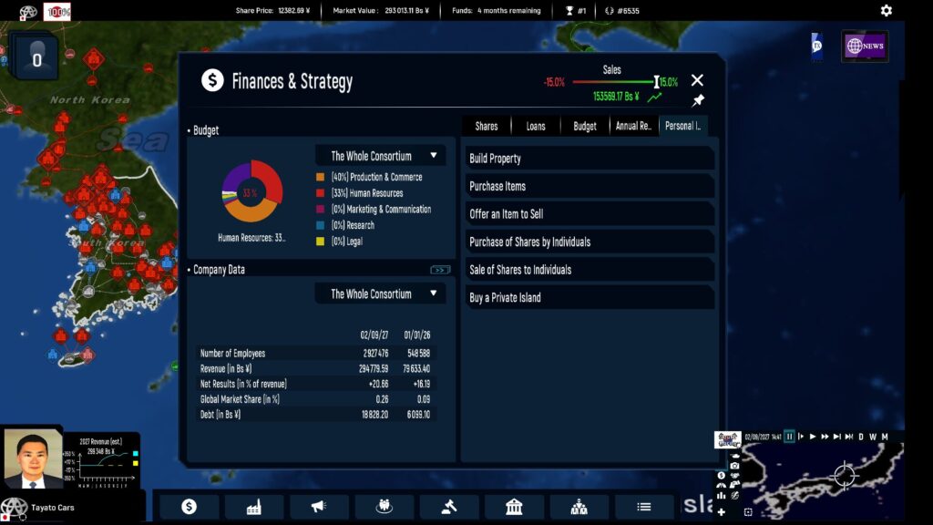 攻略の基本は、会社を育ててプレイ国のGDPを上げながら国の財政やインフラの舵取りをするのでOKです。